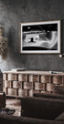Tento nápadný černobílý plakát zobrazuje přední část veteránského závodního vozu s výrazným emblémem „1c“. Elegantní křivky, leštěné odlesky a nadčasové detaily zachycují zlatý věk motorsportu a dělají z něj sofistikované umělecké dílo pro milovníky klasických automobilů.