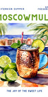 Tento živý plakát zobrazuje osvěžující moskevskou mulu podávanou v měděném hrnku, doplněnou čerstvými limetkami a bazénem v pozadí. S výraznými barvami a letní atmosférou zachycuje radost z citrusů, svěžesti a relaxace – dokonalé umělecké dílo do kuchyní, barů nebo létem inspirovaných obrazových stěn.