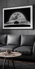 Toto surrealistické černobílé umělecké dílo zobrazuje osamělý strom pod zářícím úplňkem s ptáky vznášejícími se nad zasněnou noční oblohou. Světelnou scénou se prohánějí mraky a spojují fantazii a přírodu v pozoruhodné kompozici, která zachycuje tajemství, úžas a nadčasovou eleganci.