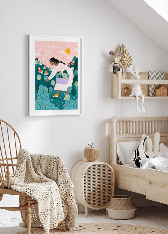 A Woman Tree Picking od Bea Müller - Papír prémiové kvality s hladkým matným povrchem a elegantním dojmem. Matný povrch snižuje odlesky a dodává rafinovaný, nadčasový vzhled. Pevný a odolný pro dlouhodobé používání, ideální pro profesionální prostředí i dekorativní displeje.