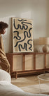Nápadný plakát abstraktní čáry s výraznými černými tahy na béžovém pozadí s texturou. Moderní a minimalistický výraz spojuje jednoduchost s pohybem, ideální pro současné, boho nebo skandinávské interiéry.
