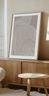 Minimalistický abstraktní plakát s organickými, plynulými bílými linkami na měkkém béžovém pozadí. Jemné, rytmické vzory poskytují pohyb a texturu a kombinují přirozenou eleganci s moderním designem. Ideální pro moderní interiéry, které chtějí klidné nástěnné umění v neutrálních tónech.