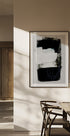 Úchvatný monochromatický abstraktní plakát s rozsáhlými černobílými tahy štětcem, vrstvený s jemnými detaily čar. Silné kontrasty a texturované povrchy vytvářejí minimalistickou, ale působivou kompozici – ideální pro moderní interiéry, skandinávský design nebo současné stěny galerie.