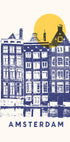 Amsterdam ★★★ af Florent Bodart hylder byens kanaler og ikoniske gavlhuse i et stilrent, grafisk udtryk. Rytmiske vinduesrækker spejler sig i vandet, mens bløde, lyse toner og præcise linjer giver en rolig, moderne stemning. Et minimalistisk motiv, der samler rejsedrømme og byens særlige lys. Perfekt til hjemmet eller kontoret.