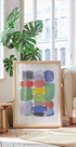 Moderní abstraktní plakát s barevnými akvarelovými bloky uspořádanými do hravých geometrických tvarů. Překrývající se odstíny modré, červené, zelené, žluté a černé vytvářejí zářivý a zároveň minimalistický výraz, ideální pro moderní interiéry a stěny galerií.
