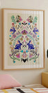 Živý plakát inspirovaný lidovým uměním se zrcadlovými králíky, ptáky, motýly a kvetoucími květinami v hravém a dekorativním stylu. Se svým šarmem severského venkova a výraznými barvami vnáší ilustrace do každého interiéru teplo a fantazii.