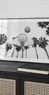 Nápadná černobílá fotografie, která zachycuje basketbalový míč ve vzduchu mířící do koše, zarámovaný vysokými palmami pod jasnou oblohou. Spojením energie městských sportů s uvolněnou pobřežní atmosférou Kalifornie je obraz dokonalým uměleckým dílem pro moderní interiéry.