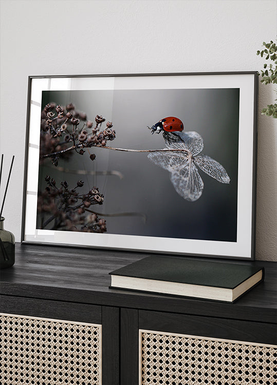 Beruška na hortenzii. od Ellen van Deelen - Papír prémiové kvality s hladkým matným povrchem a elegantním dojmem. Matný povrch snižuje odlesky a dodává rafinovaný, nadčasový vzhled. Pevný a odolný pro dlouhodobé používání, ideální pro profesionální prostředí i dekorativní displeje.