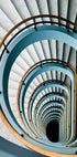 Fascinující fotografie točitého schodiště při pohledu shora, vytvářející závratnou iluzi nekonečna. Se svými plynulými křivkami, geometrickou přesností a modernistickou elegancí toto architektonické umělecké dílo zaujme v každém interiéru.