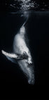 Úchvatná podvodní fotografie keporkaka zachycená proti hlubokému černému moři. Toto pozoruhodné umělecké dílo divoké zvěře zdůrazňuje majestátní krásu velryby, která klouže těsně pod hladinou a vyzařuje sílu, klid a úžas.