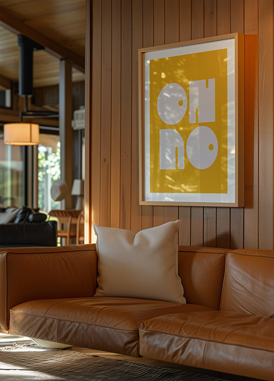 Výrazně minimalistické typografické umělecké dílo, které hlásá „no ne“ s odvážnými geometrickými tvary v designu inspirovaném retro. Plakát se zářivě žlutým pozadím a měkkými kruhovými tvary kombinuje humor, hravost a moderní grafickou estetiku, což z něj dělá výrazný kus současného nástěnného umění.