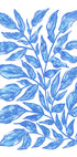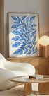 Jemný botanický potisk s ručně malovanými modrými listy na bílém pozadí. Akvarelový styl kombinuje minimalismus s elegancí, díky čemuž je univerzální volbou pro moderní interiéry. Ideální pro přidání svěžího a přirozeného nádechu do každé místnosti.