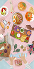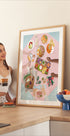 Živá ilustrace, která zachycuje radost z brunche s přáteli u barevného stolu. Od ramen a tacos po croissanty a čerstvé ovoce, toto umělecké dílo oslavuje globální kuchyni a komunitu a zdůrazňuje jídlo jako výživu i sdílený zážitek lásky a přátelství.