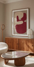 Moderní abstraktní kompozice od Vitora Costy, kde sytě červené geometrické tvary tančí na jemném béžovém pozadí. Kontrast mezi ostrými úhly a organickými křivkami vytváří klidné napětí, zatímco jemné akvarelové textury dodávají teplo. Ideální pro minimální dekoraci a výzdobu poloviny století. Grafické vyjádření, které spojuje místnost dohromady.
