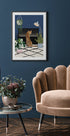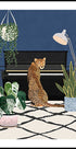 Svérázná a stylová ilustrace geparda sedícího u klavíru obklopeného bujnými pokojovými rostlinami a moderní výzdobou. S výraznými barvami a hravými detaily dílo kombinuje hudbu, divokou přírodu a kouzlo interiéru a stává se jedinečným prohlášením pro milovníky zvířat a designové nadšence.