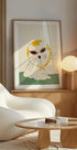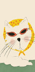 Náladový retro styl ilustrace kočky s chytrými slunečními brýlemi a žlutým puntíkatým šátkem. S hravými liniemi a nostalgickým dojmem poloviny století tento kousek kombinuje humor a šarm a je radostným prohlášením pro milovníky koček a interiérů inspirovaných retro.