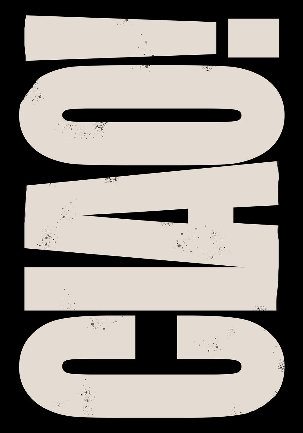 Výrazný plakát s vertikální typografií, zvýrazňující slovo CIAO velkými, tučnými písmeny na černém pozadí. Moderní a stylová volba pro grafický design domácnosti.