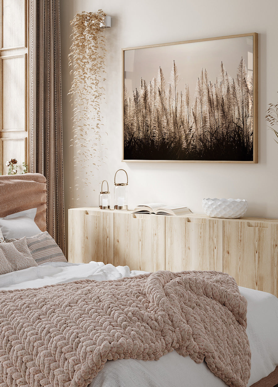 Plakát s cukrovou třtinou a chocholy při západu slunce