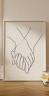 Minimalistická a něžná, tato monochromatická perokresba zachycuje dvě ruce, které se setkávají v jemném sevření, sledují tichý jazyk důvěry, romantiky a přátelství. Čisté kontury na světlém pozadí vytvářejí výrazný kontrast, což z něj činí všestranný doplněk pro ložnice, galerie nebo moderní obytné prostory.