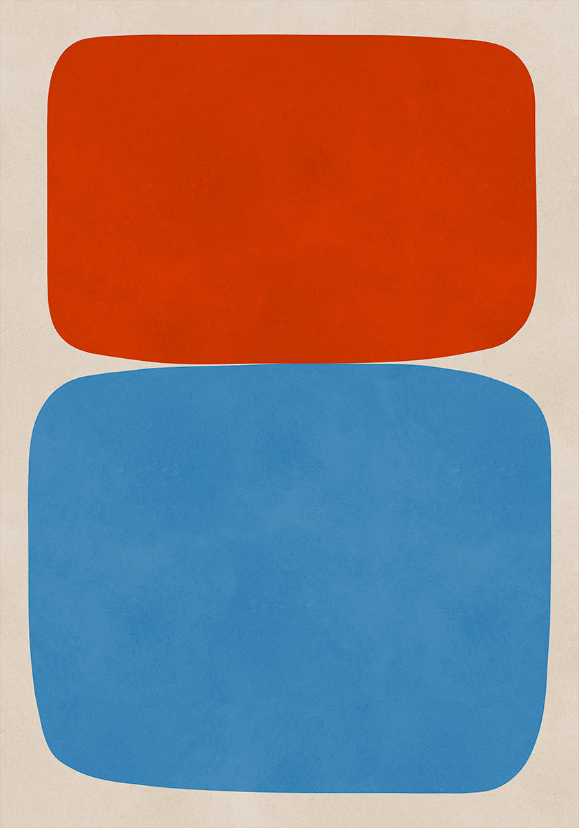 Vitor Costa Dual Harmony vyvažuje výraznou geometrii a lyrickou barvu. Překrývající se obdélníky sytě modré, teplé červené a změkčených neutrálních tónů se unášejí a zarovnávají a vytvářejí klidný rytmus poloviny století. Průhledné vrstvy a změkčené okraje evokují akvarelovou hloubku a propůjčují moderní eleganci každému prostoru. Ideální pro moderní, boho interiéry nebo interiéry z poloviny století.