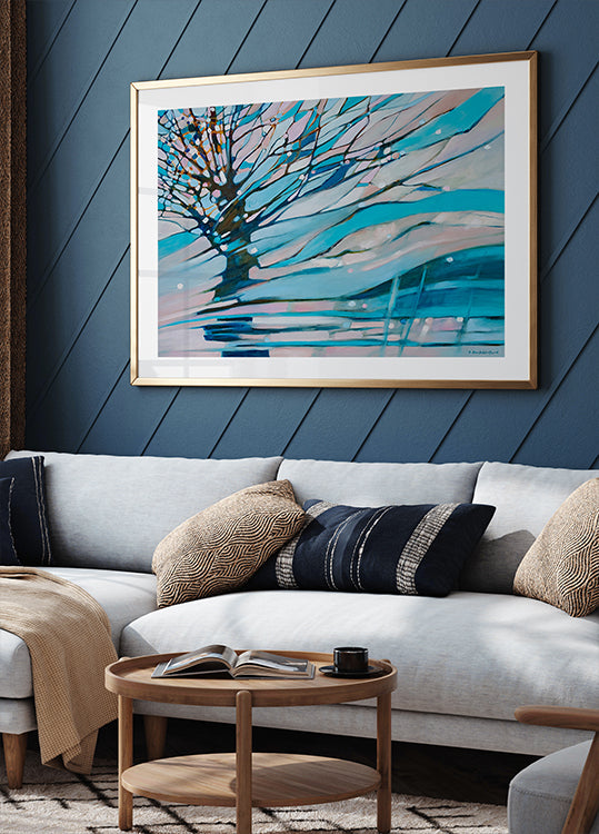 Dynamická souhra Beaty Brząkalik-Gburek zachycuje poetickou zimní krajinu v abstraktních, tekutých formách. Jemné pastely v modré a růžové barvě září nad klidným horizontem, kde vrstvy světla a stínu vytvářejí hloubku a pohyb. Moderní akcent, který přináší styl a harmonii do místnosti. Ideální do obývacího pokoje, vstupní haly nebo kanceláře.