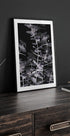 Eucalyptus Negative 002 zachycuje grafickou poezii přírody: štíhlé listy eukalyptu vystupují jako negativní silueta proti hluboké černé, prodchnuté fialovými odstíny. Minimalistická kompozice vyvažuje klid a tajemství a dává stěně moderní, atmosférický ústřední bod. Jemný poutač se severským nervem, který ukotvuje místnost.