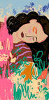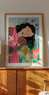 Expresivní postava Obklopená Barevnými Květinami Plakát