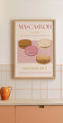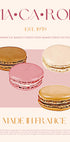 Francouzský macaron plakát s barevnými dorty na bázi pusinek, zdůrazňující jejich původ a založení v roce 1959. Design zdůrazňuje tradiční pečivo, zářivé barvy a francouzské cukrářské umění.