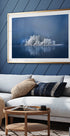Frosty Island od Güntera Klebera zachycuje klidný zimní ostrov obklopený ledovými zrcadlovými vodami. Zasněžené stromy stojí jako siluety v namodralých tónech, zatímco mlha měkce zahaluje obzor. Klidná, minimalistická krajina, kde se chlad a světlo potkávají a vytvářejí téměř meditativní ticho. Barvy se pohybují od tmavě modré po jemně šedou.