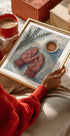 Sugestivní zimní viněta: pár teplých rukavic odpočívá v čerstvém sněhu vedle šálku kouřícího kakaa, zatímco jednoduchá zimní větev naznačuje blízkost lesa. Motiv dýchá útulností, adventem a tichým zimním klidem - poetický moment, který přináší na stěnu teplo a přítomnost po celý rok. Ideální pro vánoční náladu v obývacím pokoji, kuchyni a vstupní hale.