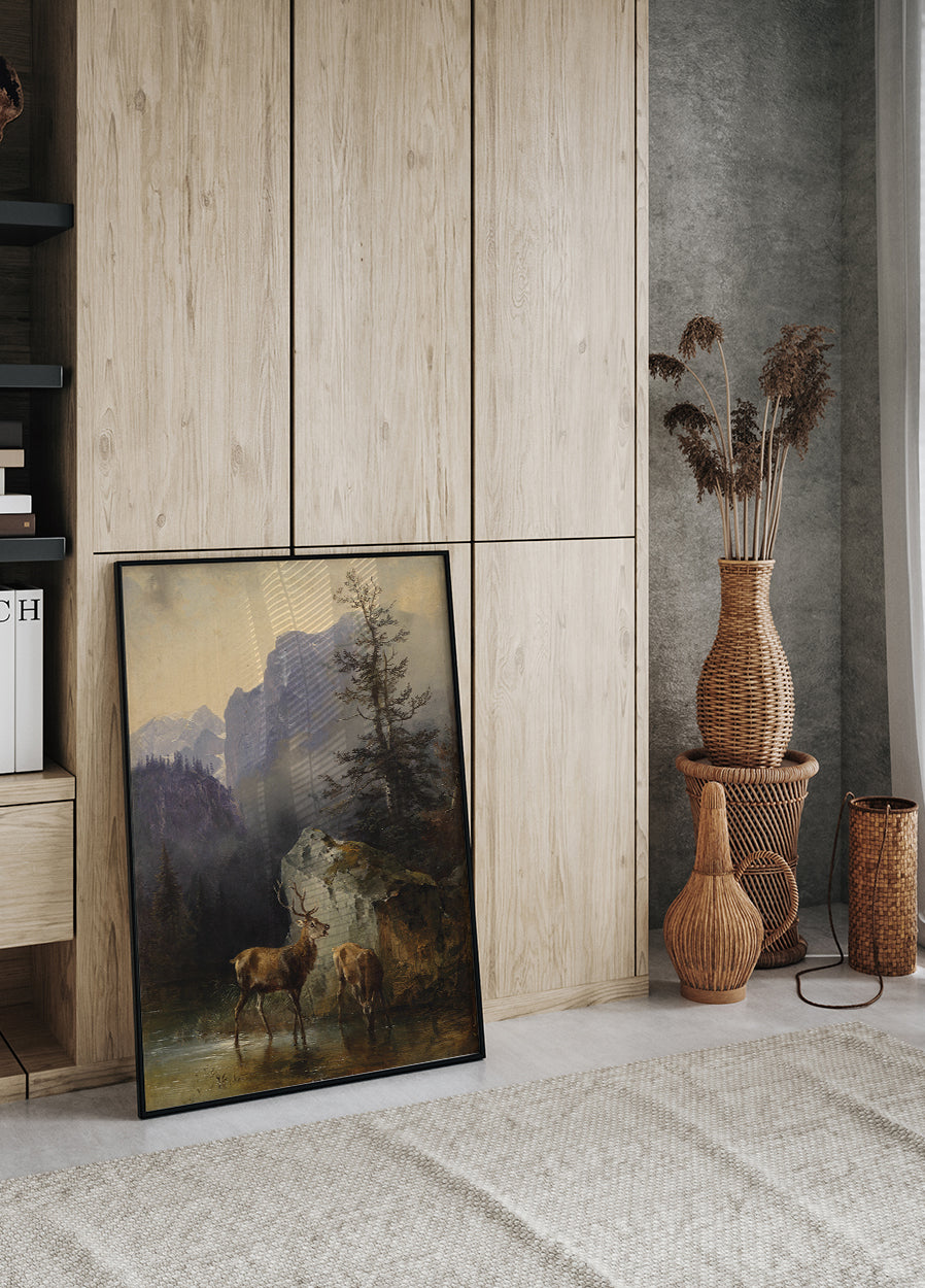 Hirsch And Tier An Der Tränke Autor Friedrich Gauermann Plakát