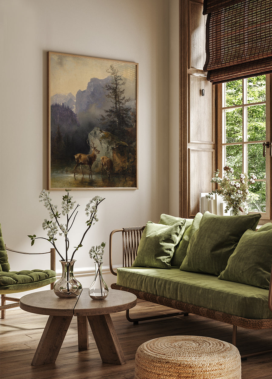 Hirsch And Tier An Der Tränke Autor Friedrich Gauermann Plakát