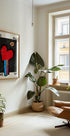 En rolig og minimalistisk plakat af Frances Collett: Et stort gråt hjerte omslutter en enkel fredsdue og ordene "It's All Love". De bløde gråtoner og rene linjer skaber en varm, poetisk ro, der passer smukt i stue, entré eller soveværelse – som en stille daglig hilsen om kærlighed. Tidløs som gave til bryllup, valentinsdag eller til din egen væg.