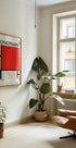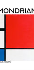Ikonické abstraktní umělecké dílo Pieta Mondriana, vytvořené v roce 1930. Dílo ukazuje silná barevná pole v červené, modré, žluté a bílé, oddělená tlustými černými linkami, které představují Mondrianův jedinečný styl geometrické abstrakce a rovnováhy.