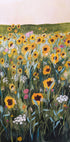 Živá malba letní louky plné zlatých květů, jemných lučních květin a bujné zeleně. Tahy štětcem zachycují teplo a krásu přírody a přinášejí krajinu do domova se svěží a šťastnou atmosférou.