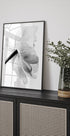 Poutavá černobílá fotografie, která zachycuje jemné textury a detaily rozkvetlé květiny. Minimalistická kompozice podtrhuje přirozenou eleganci květin a je rafinovanou volbou do moderních, venkovských nebo farmářských interiérů.