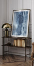 Klidný, abstraktní motiv v sytě modrých odstínech, kde vertikální, plynulé linie tvoří mrazivý tok přes obraz. Jednobarevná paleta dodává chladnou, moderní atmosféru, zatímco jemné pohyby vytvářejí rovnováhu a hloubku. Perfektní pro minimalistické pokoje, které hledají stylový klid, nebo jako kontrast v teplých interiérech.