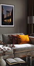 Úchvatný pohled na Manhattan Bridge v Brooklynu, New York, zachycený při západu slunce s Empire State Building dokonale orámovanou mezi ocelovými oblouky. Tento ikonický městský plakát zdůrazňuje architektonickou krásu a městskou atmosféru NYC, díky čemuž je nutností pro cestovatele a moderní domácí dekorace.
