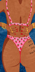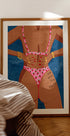 Plakát My Ass My Rules je nebojácné a posilující umělecké dílo, které oslavuje sebedůvěru a sebeurčení. Tento kousek se vyznačuje opálenou postavou ve výrazných růžových bikinách s jahodovým vzorem, který neomluvitelně zvýrazňuje přirozené strie, a ručně kresleným textem „My Ass My Rules“ na stehně. Tmavě modré texturované pozadí poskytuje ostrý kontrast, zatímco zlaté šperky a jasně červené nehty dodávají nádech půvabu. Ideální pro současné interiéry, posilující prostory a milovníky umění, kteří přijímají nekompromisní sebevyjádření.