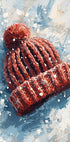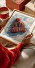Sugestivní zimní ilustrace pletené čepice se střapcem v tichém sněžení - malá chvilka pohody, klidu a hravosti dětství. Měkké tvary a jednoduchý motiv nechávají fantazii toulat se, zatímco sníh tlumí svět kolem. Poetický zimní vzhled od Ohkimiko. Ideální pro přenesení teplých zimních vzpomínek do domova.