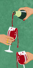 Barevná ilustrace rukou nalévajících červené víno do sklenic, kde víno hravě a slavnostně přetéká. Díky výrazným barvám a stylovým detailům tento kousek zachycuje radost ze setkání, koktejlů a společných chvil a stává se elegantním a živým prvkem v moderních interiérech.