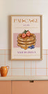 Okouzlující plakát ve vintage stylu s hromadou nadýchaných palačinek přelitých jahodami, borůvkami a zlatým sirupem. Toto umělecké dílo navržené s retro typografií a pastelovými barvami kombinuje nostalgii jídla se stylovou výzdobou, ideální pro kuchyně, kavárny nebo milovníky snídaní.