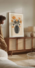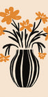 Veselá a moderní ilustrace jasně oranžových květů v nápadné černobílé pruhované váze. Hravý design a teplé tóny přinášejí svěží, umělecký nádech do každého prostoru – ideální pro kuchyně, obývací pokoje nebo stěny galerie, které potřebují šmrnc.