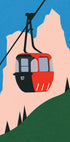 Odvážná a hravá grafická ilustrace červené lanovky klouzající přes Alpy. S čistými liniemi, plochými barvami a retro cestovní estetikou dílo zachycuje radost z horského dobrodružství a nadčasové kouzlo vysokohorské dopravy v moderním uměleckém stylu.