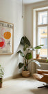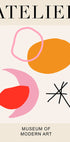Moderní abstraktní plakát s nápadnými grafickými tvary v červené, růžové a oranžové barvě s detaily černých linek. Toto umělecké dílo navržené v minimalistickém stylu s textem „Atelier – Museum of Modern Art“ zachycuje podstatu moderního designu a dokonale se hodí do stylových interiérů.