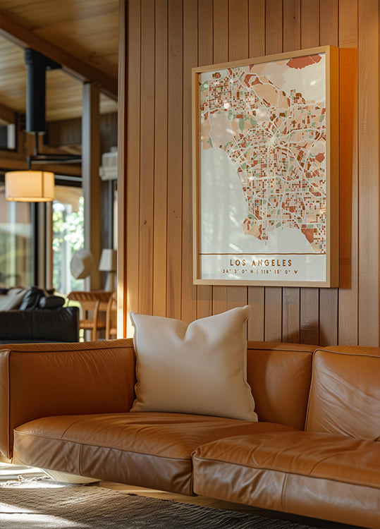 Black Maps Earth Tones 42 od Emiliano Deificus zobrazuje stylizovanou mapu Los Angeles v hlubokých zemitých tónech. Jemné síťované ulice, hollywoodské kopce a obrysy pobřeží tvoří elegantní, grafický vzor, který zachycuje rytmus velkoměsta a je dokonalým doplňkem v moderních i klasických prostorách. Zavěste jej samostatně nebo na stěnu galerie.
