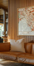 Evokující plakát s mapou města Melbourne od Emiliana Deificuse. Tmavé černé povrchy se setkávají s teplými zemskými tóny, kde ulice, čtvrti a pobřeží vystupují jako elegantní linie a pole. Stylový městský poutač, který zachycuje rytmus velkoměsta a zve vás ke každodenním objevům. Ideální do obývacího pokoje, pracovny nebo pracovny.