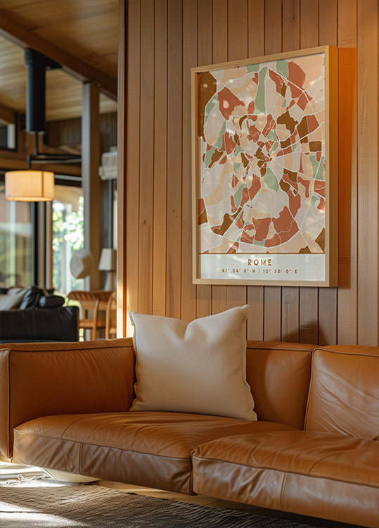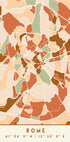 Sugestivní mapa města Říma v zemitých tónech: hustá uliční síť, elegantní linie řek a výrazné čtvrti zakreslené v hlubokých černých polích a teplých, tlumených odstínech. Emiliano Deificus kombinuje grafickou preciznost a poetický klid v minimalistickém výrazu, který povznáší moderní i klasické prostory. Perfektní jako poutač v obývacím pokoji, kanceláři nebo vstupní hale.