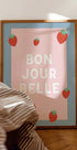 Dodejte svému domovu francouzský šarm s touto legendou Bon Jour Belle-plakát. Obklopen červenými jahodami v jemných pastelových barvách spojuje sladkost a styl. Perfektní do kuchyní, kaváren nebo jako veselé nástěnné umění, poskytující svěží nádech barev a každodenní kompliment vašemu prostoru.