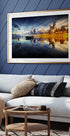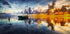 Tato úchvatná přímořská krajina zachycuje osamělou plachetnici odpočívající na klidné vodě pod dramatickým západem slunce. Odlesky zlatých mraků se vlní po hladině vody, spojují v sobě klid s majestátností a vytvářejí nadčasové dílo námořního umění, které vyzařuje klid, pohodu a přírodní krásy.